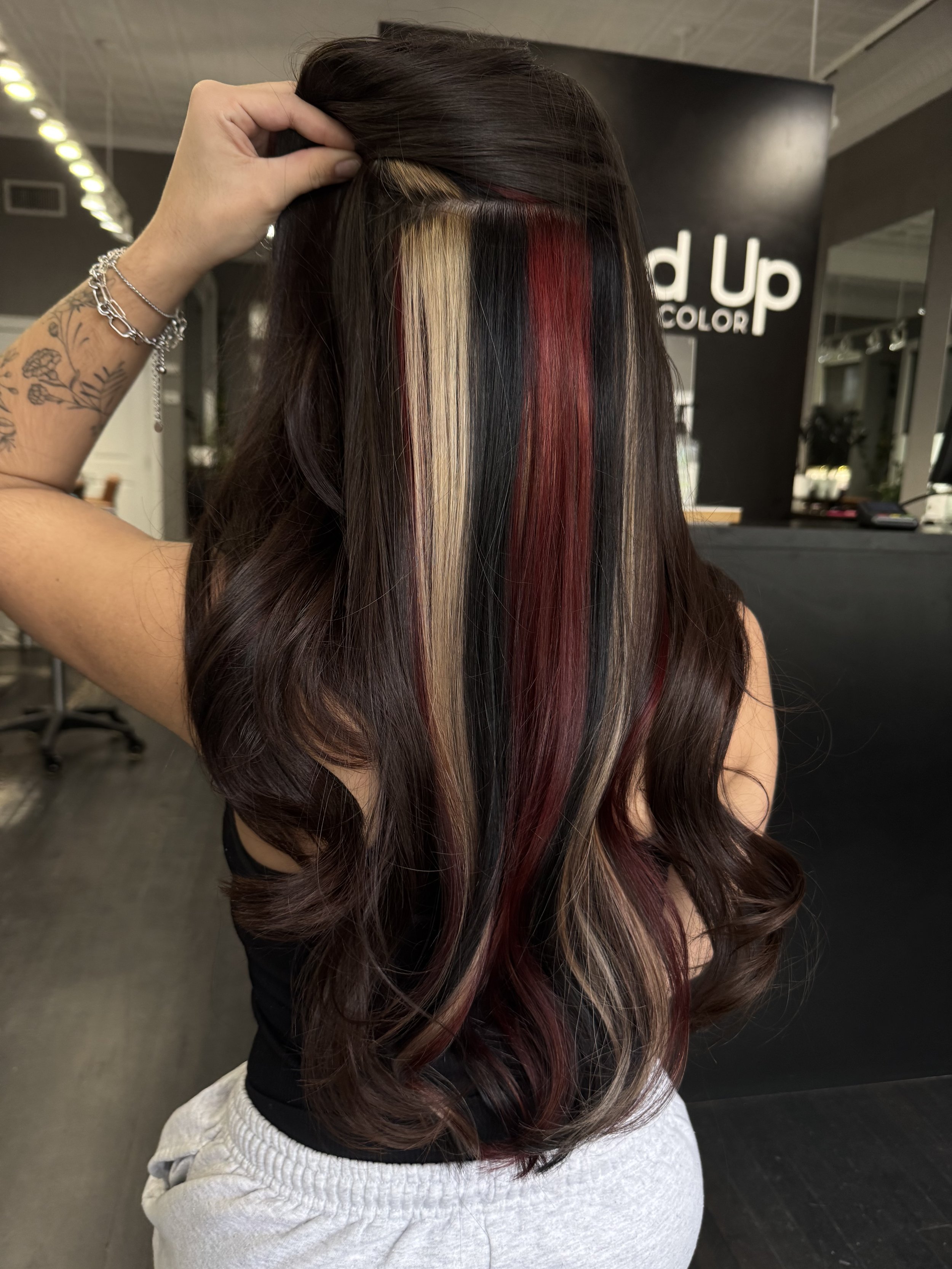 At Tangled Up, our mission is to provide luxurious personalized experiences that transform hair and confidence, We have a full team of Junior and Senior stylists with a variety of price levels. our passionate team stays ahead of trends, inspired by the interplay between various levels of experience collaborating to craft blowouts, color ,extensions , and transformative services with precisions and pride.